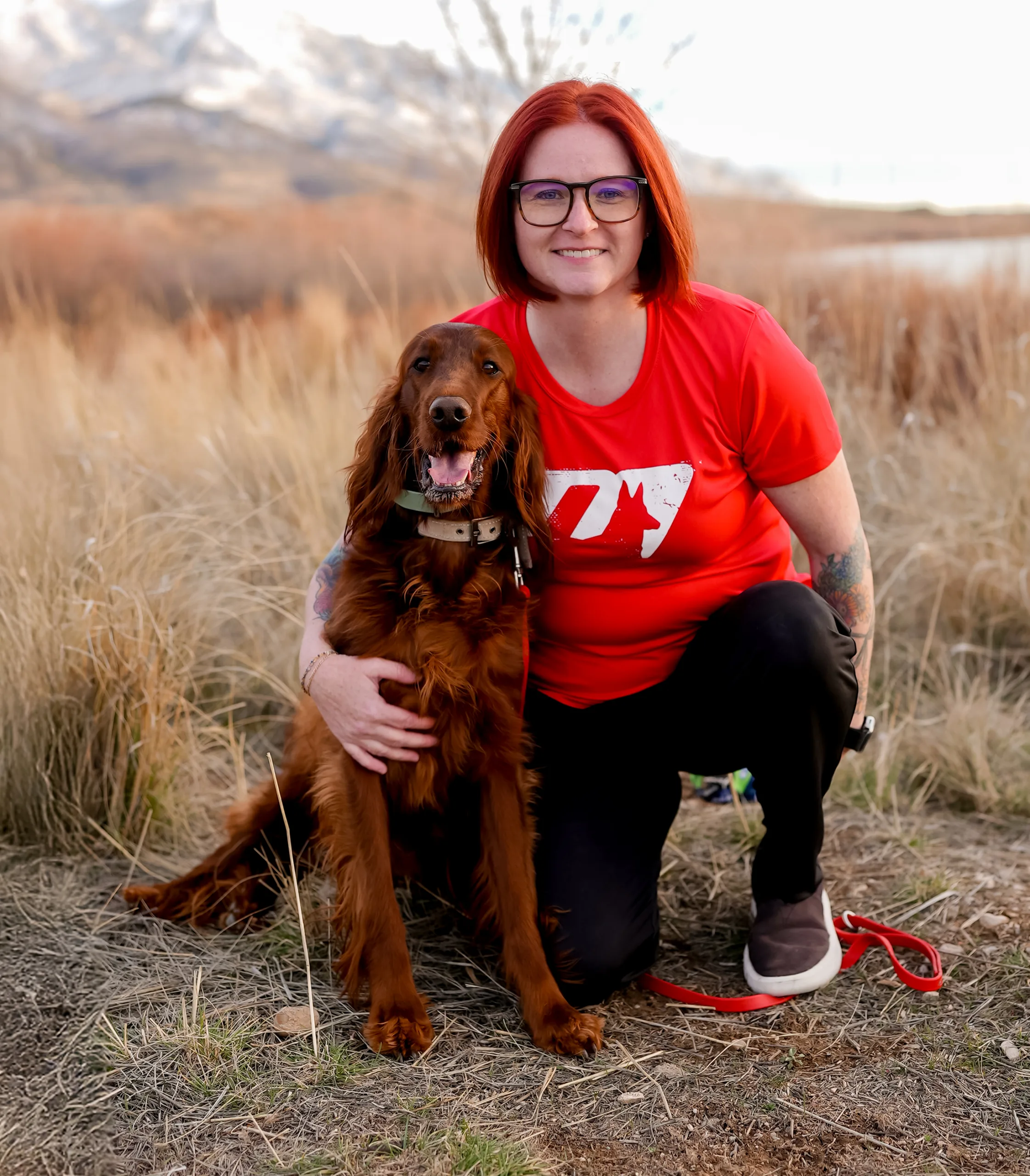 In 2023, after evaluating a litter of Irish Setters with Russ, she welcomed Charlie into the family. While Charlie can often be vocal and dramatic, she has been trained through all levels of obedience (well… almost), including e-collar work, and is currently working toward service work. Recently she decided she wasn’t quite done growing her pack and brought home Oliver, a Pembroke Corgi, also selected with Russ’s help. Oliver is the pack’s biggest personality and will, quite hilariously, likely end up as the leader—despite being the littlest dog.
